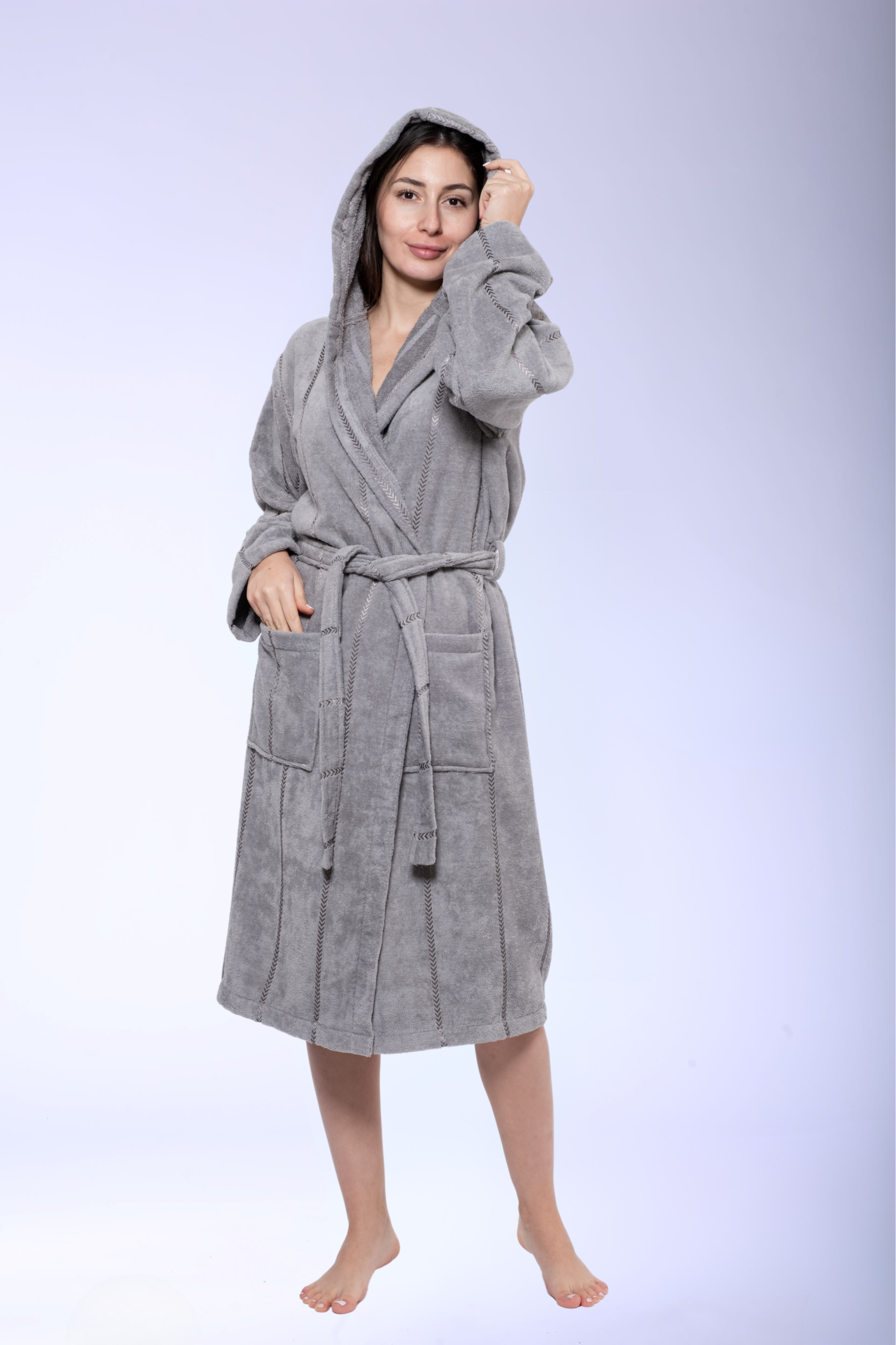 Bademantel Volina für Damen und Herren aus Baumwolle anthrazit
