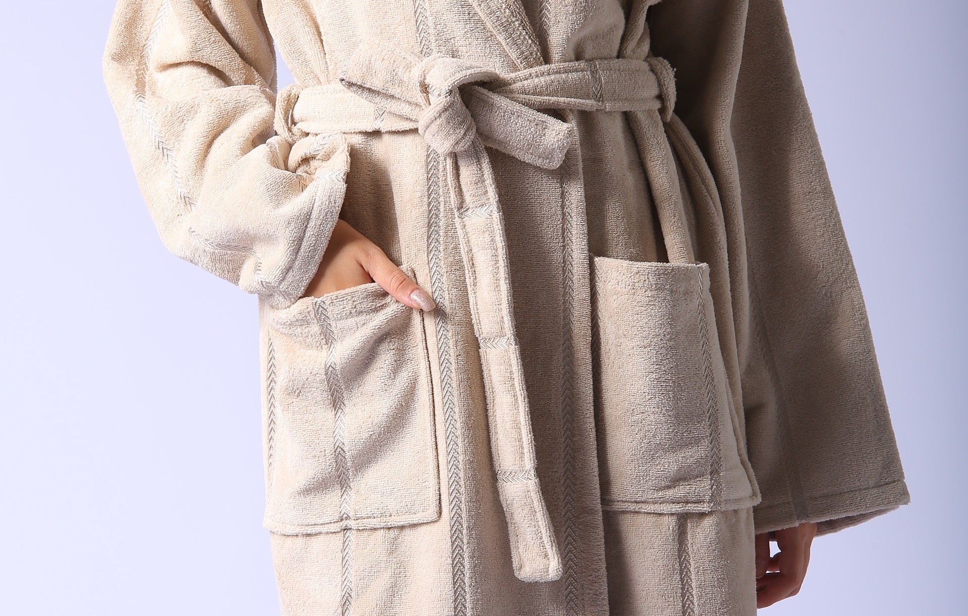 Bademantel Volina für Damen und Herren aus Baumwolle beige
