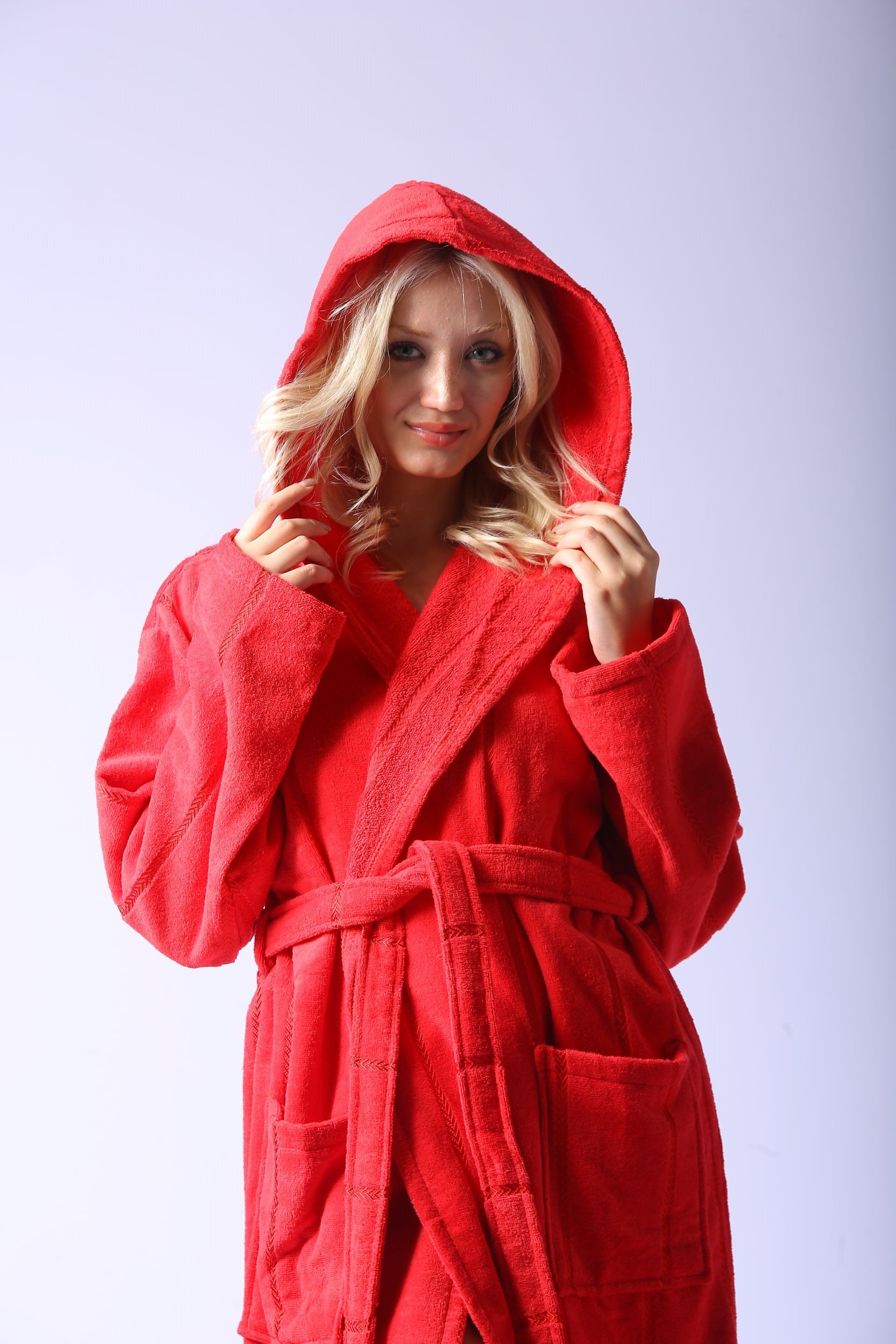 Bademantel Volina für Damen und Herren aus Baumwolle rot